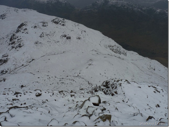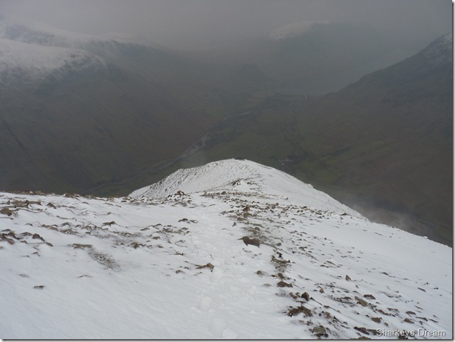 Heading down the nose of Kirk Fell, feeling a little deflated. |