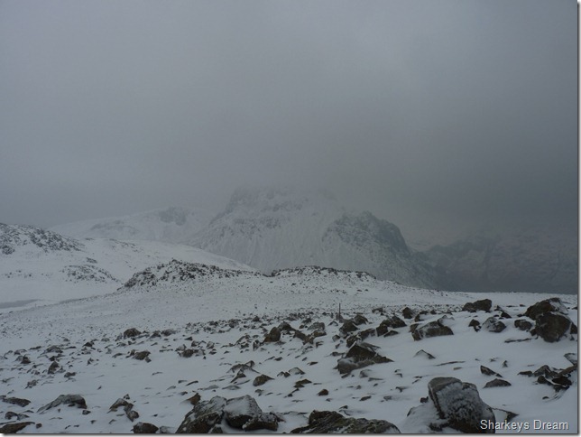 I do that quick scan thing you do, I eye the guy up, he seems half ready for a day on the fells, although a half empty 25ltr day pack is not sufficient for a full winter hike, but what the hey. He goes on to say… yeah Scafell is around here isn’t it? err, yeah its behind you, what, that one? no that’s Lingmell. To get to Scafell from here you take in the lower slopes of Lingmell off to the left, which will then lead you onto Brackenclose…