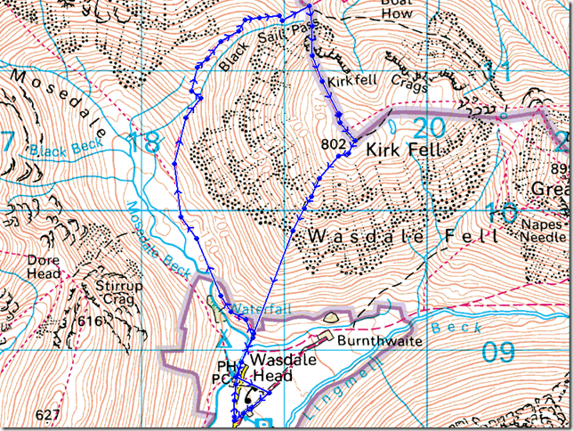 Wasdale Head – Black Sail Pass – Kirk Fell – Kirk Fell Tarn – Kirk Fell Screes – St Olafs Church – Wasdale Head |