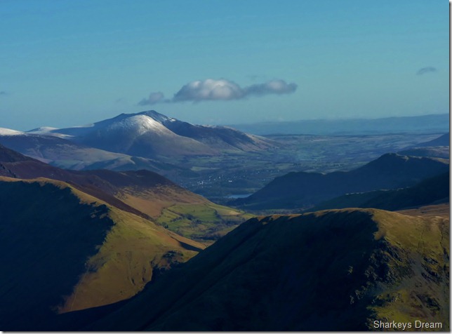 A not so close up of Blencathra, the outlined fell on the right is that of Cat Bells. |