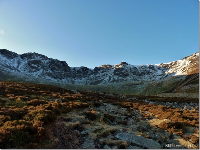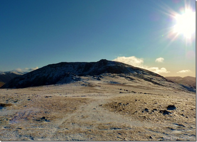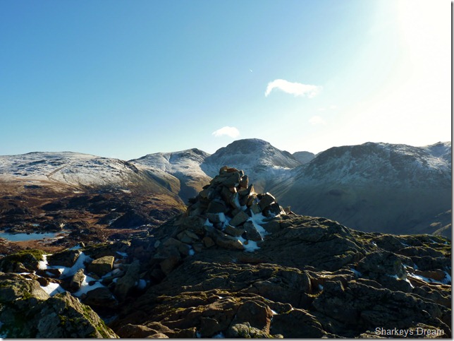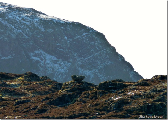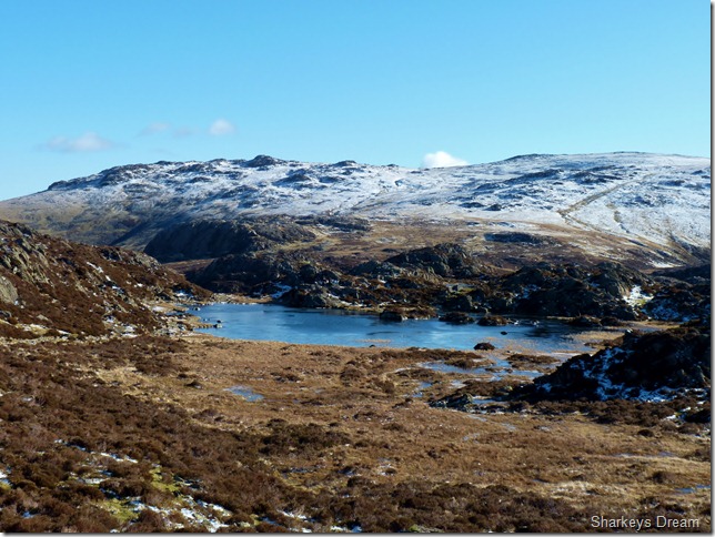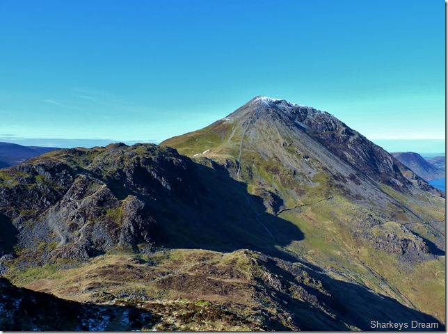 Being as Haystacks is as popular as ever, especially on a day as good as it today, I am a little puzzled to were all the people are? I can spot four hikers on the path, what looks like a couple somewhere near the top & a bloke & his daughter clothed head to toe in pink, including a pink bobble hat, I think cute – you soppy sod Sharkey. |