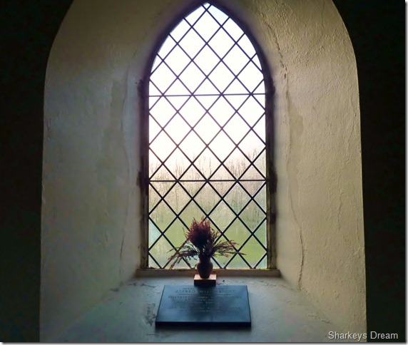 The Alfred Wainwright Memorial window looking over Wainwrights final resting place, Haystacks.