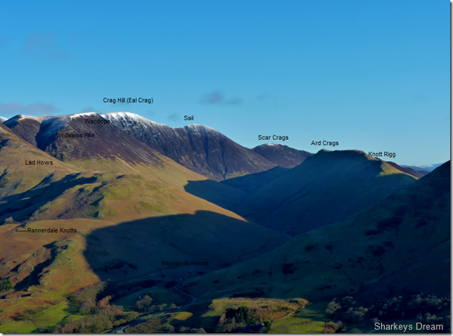 Looking across Buttermere, here we have (L) to (R) High Smockrigg, Robinson, Hindscarth & finally Dale Head at the far end of the ridge. |