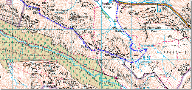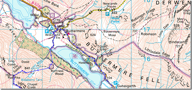 Old Burtness – Bleaberry Tarn – Red Pike – High Stile – High Crag – Gamlin End – Seat – Scarth Gap – Haystacks – Blackbeck Tarn – Warnscale Beck – Warnscale bottom – Gatesgarth – Buttermere |