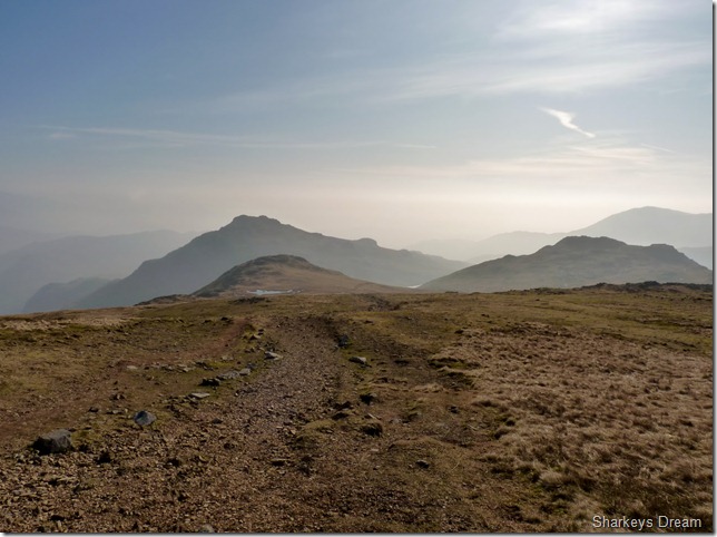 Here looking towards Esk Pike, Great End, Broad Crag & a wall of haze. |