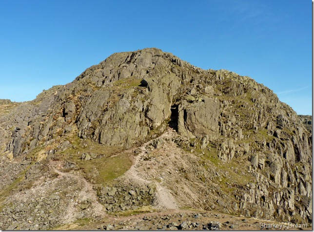 Bow Fell Buttress dead ahead from the start of The Climbers Traverse. |