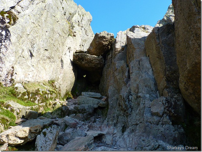 Only once have I used the Bad Step as a route of the summit of Crinkle two (the summit) & that was a descent in terrible weather back in 2010, A bad experience due to a frightening wind, low visibility and even lack of experience left a bad taste, on my last lone visit back to the Crinkles in October 2011 I skirted the Bad Step via the path you see over on the left of the picture.