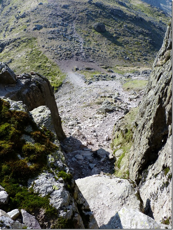 Descending back down to Three Tarns via the path you saw in an earlier photo, its a pretty tricky path & pretty unstable, an ascent via this path would be much preferred.