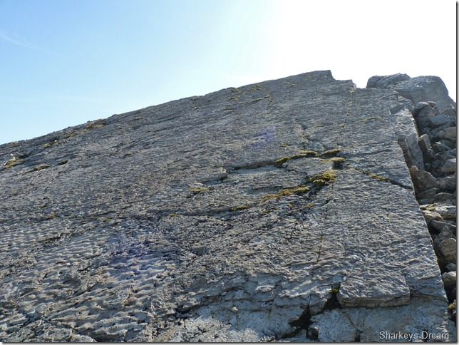 After ascending the rocky scree gully in between Cambridge Crag & The Great Slab I was urged to head towards this huge slab of tilted rock & try for footings, in which case this ended up a bad idea, a little belly wobble greeted me as I placed just the one boot on the slab.