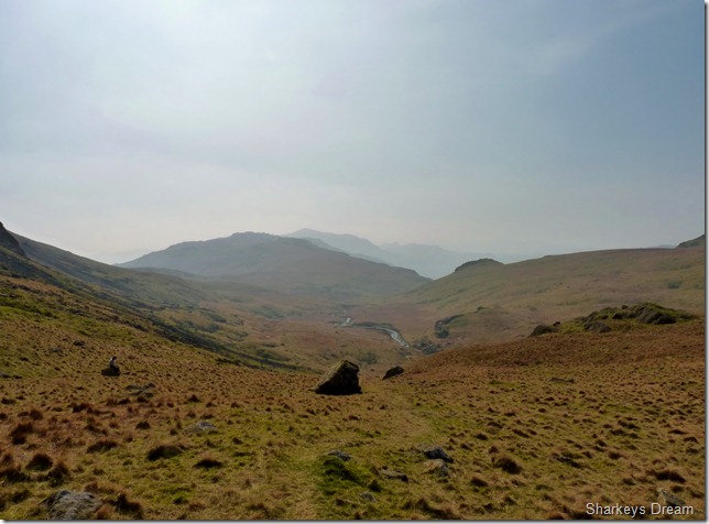 Hazy views are all around here depicting Rossett Pike & the Glaramara Ridge in the background. |