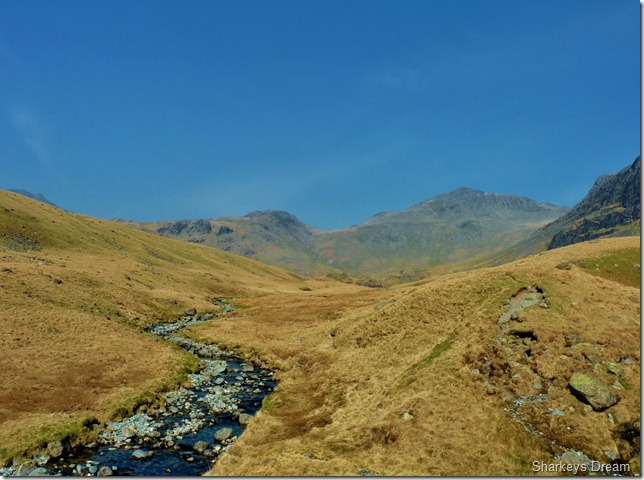 Esk Pike, Ore Gap & Bow Fell from Lingcove Beck.