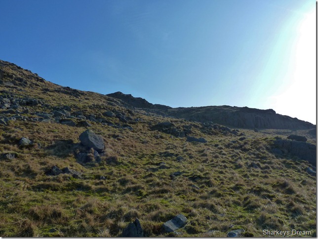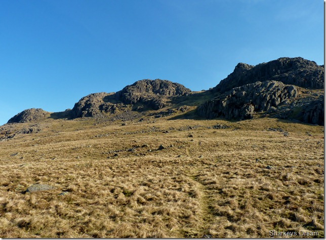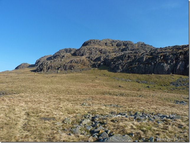 A southern aspect of Crinkle Crags as I flank Stonesty Pike on my left, my route would take me towards the right & up between the two sets of crags you see in the picture. |