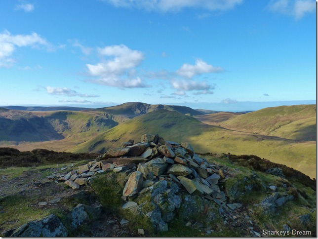 We take off packs once again rest assured the cold wind will not freeze the sweat that has engulfed the whole of my back, we chat on how good the legs felt & how well were doing with time. From the direction of Carling Knott a couple appears as we are starting to pack up, it looks like they need a little respite out of the fresh wind too, we chat on our routes & discover that he has only just started his walk & is aiming to get over to Starling Dodd, we however have nearly finished our walk short of one fell. |