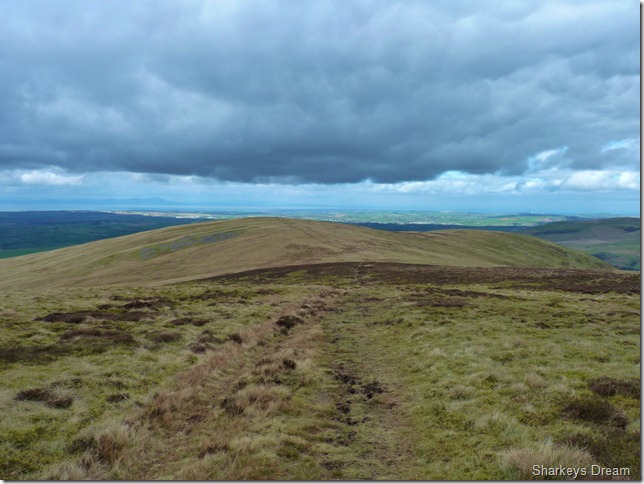 Leaving Mellbreak’s north top as we head across this depression along the summit backbone, the summit is just over half a mile away & only four metres separate both summit tops, with the north top at 508 Metres & the South top at 512 Metres. |