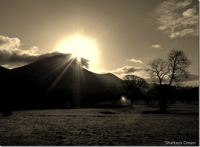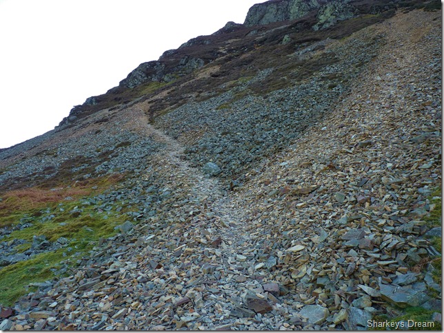 Between leaving the car & this path; ahead the sun is rising to our east just above Whiteside & the surrounding fells, all the while as how a powerfully and beautifully image this was, I am unable to capture with my camera through sun-glare. |