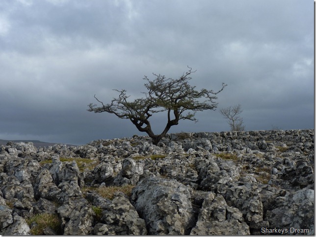 A lone tree marks the path with Ingleborough in the background. |