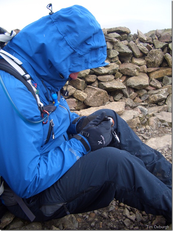 A couple pass us as we finish up, It looks like Gaynors of Ambleside have just hit their monthly target looking at these two! with brand new this & that – even helmets with LED lights attached to there brand new packs, we watch on as the couple take more than there fair share of breaks towards the summit, but they do this hand in hand which kinda gives of that ahhh factor. |