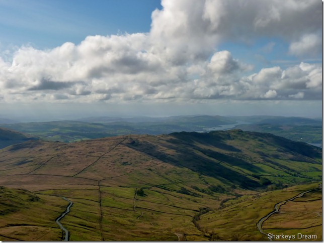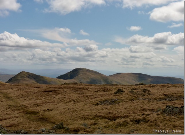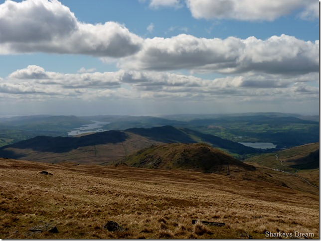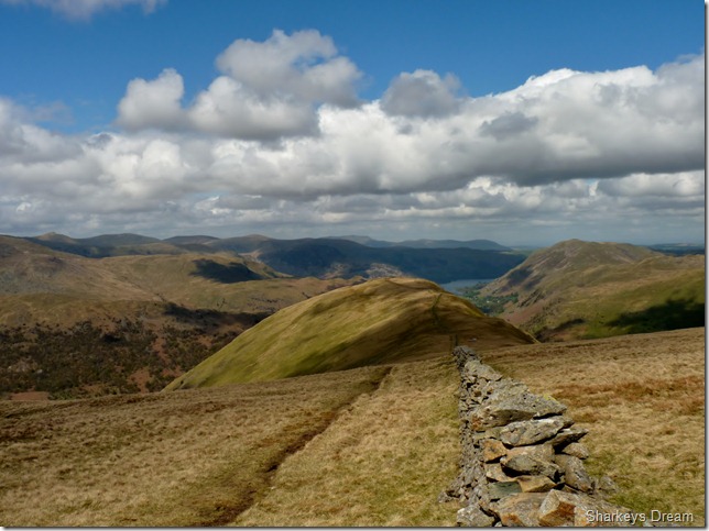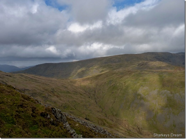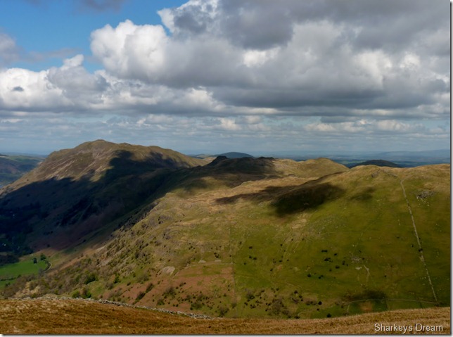 Looking towards the Eastern fells, in the very foreground we have Little Hartsop Dodd forming the top of the Scandale Pass, then we have Dove Crag & behind that is Hart Crag, Saint Sunday Crag is over on the right of the picture with its summit just under cloud. |