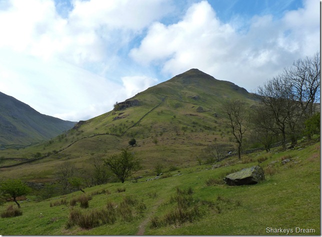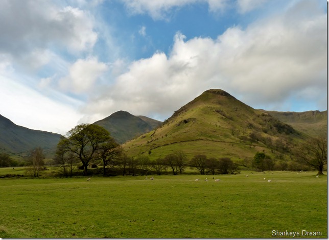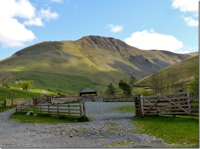 Gray Crag from the cattle enclosures just outside of the tiny hamlet of Hartsop. |