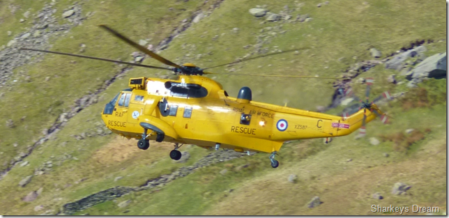 A RAF Sea King passes directly over the top of the Kirkstone Pass as we make our ascent onto St Ravens Edge, it idles slowly & I’m able to get a few descent shots this being one of them, note the blurriness around the tail & rotor, this being the hot exhaust fumes emitting from the engines. |