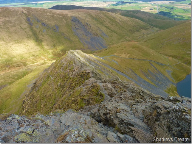 Looking down on Sharp Edge from just beneath the summit of Foule Crags.