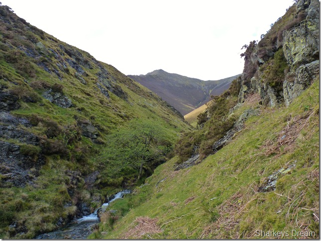 As I crossed Scaley Beck did I had to negotiate a sudden drop to get down to the river bottom, this was gained by lowering myself sometimes with my arse I might add down some mighty steep wet rock, I kid you not, my heart fluttered more on this wet tricky 15 foot descent that it did on both the arêtes & ridges I had traversed today!