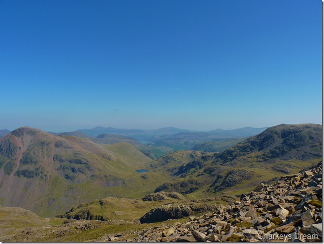 Looking in a north easterly direction over Styhead Tarn & Borrowdale. |