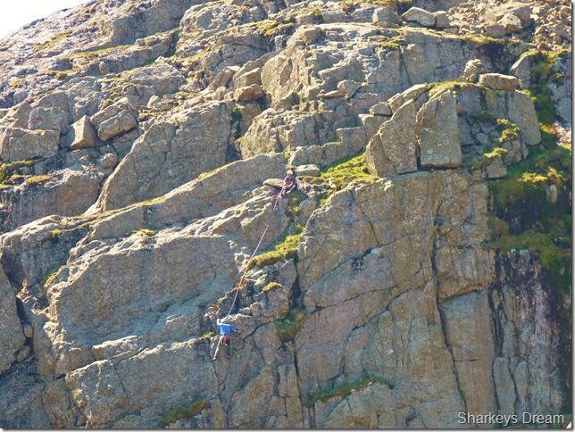 Whilst eating lunch I also took a few photos of the rock climbers roping down Broad Stand & Scafell Crag. |