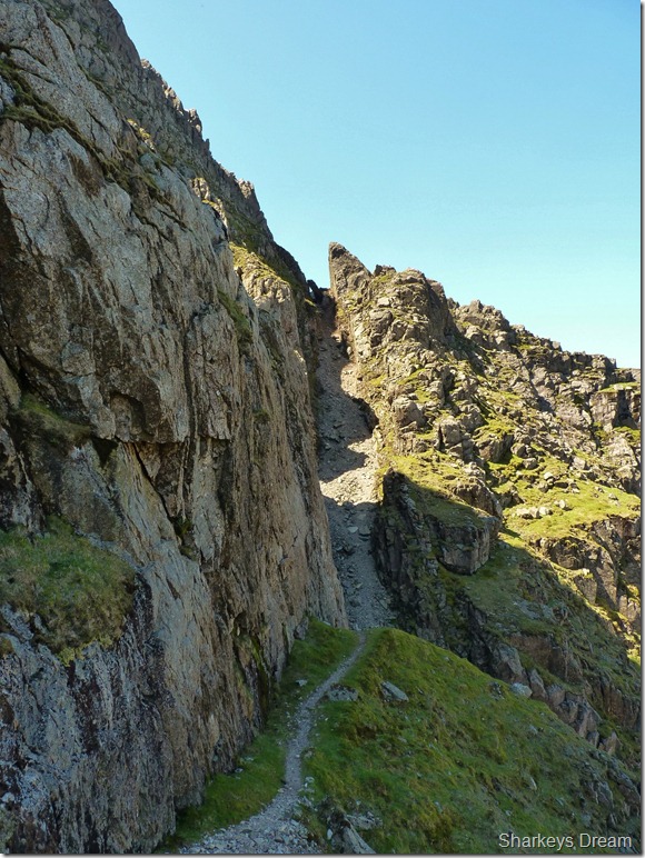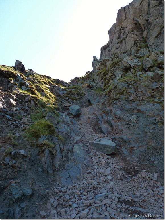 Once the path is gained, its just a short nervy big your self up moment to the bottom of the Rake. |