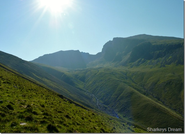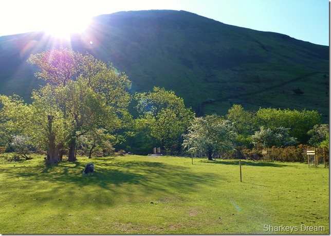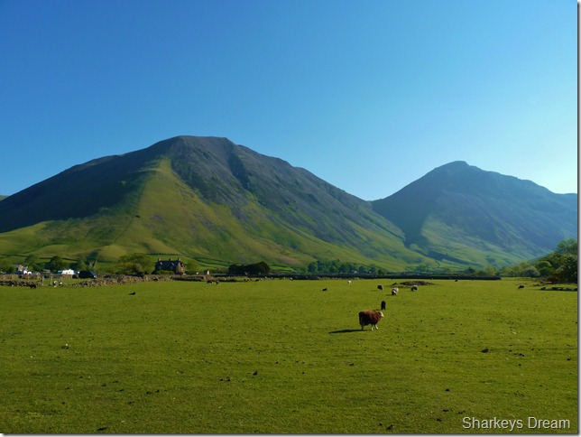 Lingmell in much welcome shade as we pass through this pasture towards Lingmell Beck. |