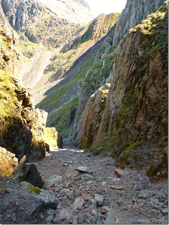 The “top of” Piers Gill over shadowed by Great End (L) & Broad Crag (R)