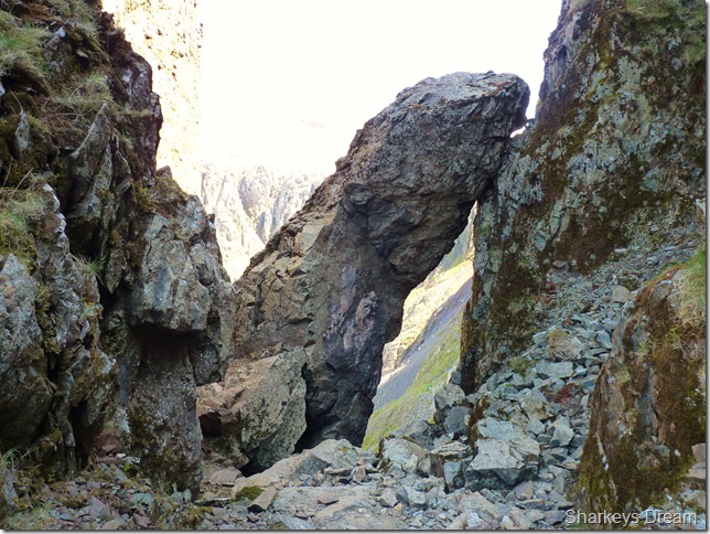 Lord’s Rake with the Chock Stone clearly visible as we take in the last few metres.