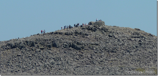 A close up of Scafell Pike now packed with dozens of walkers. |