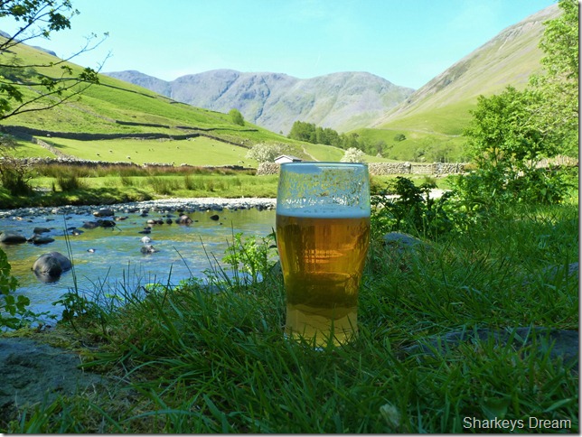 We suggested our new found tradition on trying the local brew as we arrived back at Wasdale Head, although the hour was late the decision to have a paddle & a pint after a walk such as this didn’t take too long to make. |