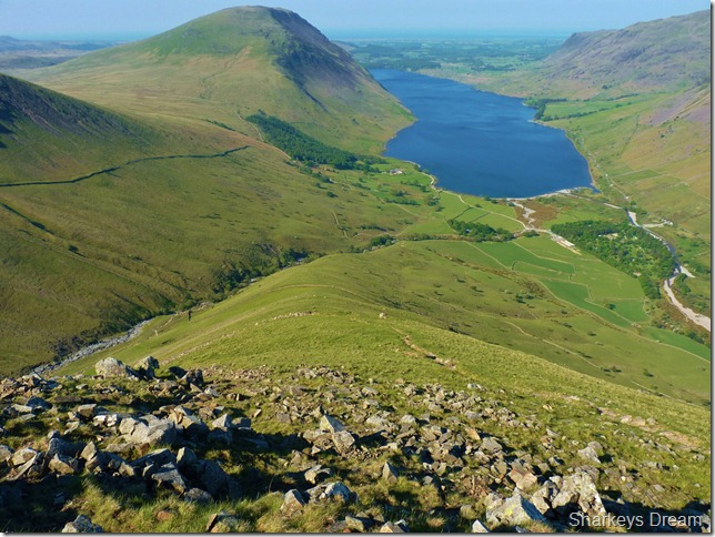 But the views are more than worth the tough steep climb, here looking down on a deep blue Wast Water with Illgill Head on the left & part of Yewbarrow’s flanks & Middle Fell on the right. |