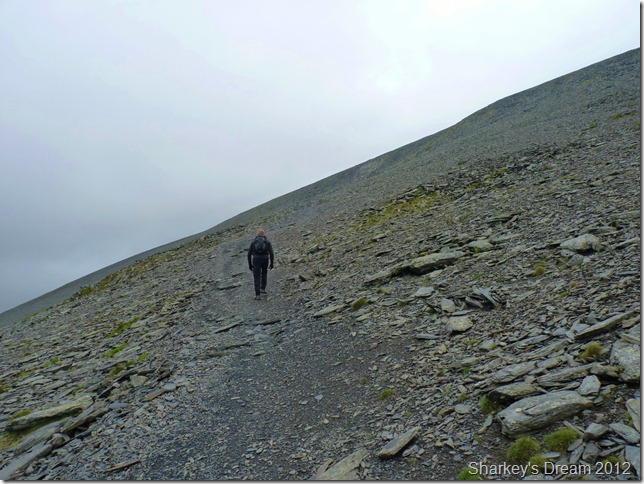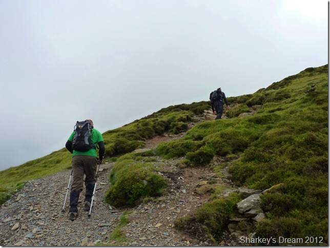 Here looking back along the path as it straightens out a little as we reach the point were we turn right for the ridge route, the hard work is now done, & I must admit even I felt the pull. |