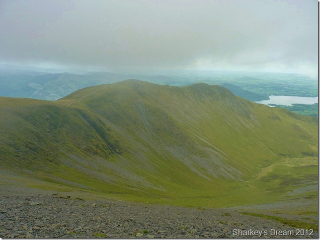 Not before looking back & taking this photo if Skiddaw Little Man (R) & Lonscale Fell (C) Blencathra is partially hidden beneath yet more lingering cloud. |