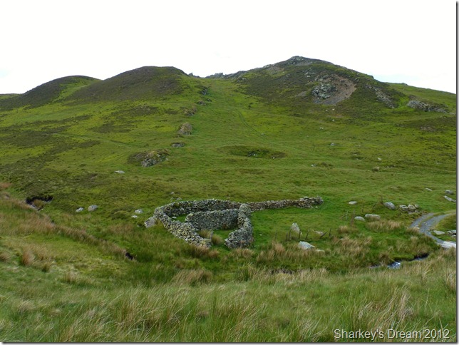 The double sheepfold found as we cross Barkbeth Gill.