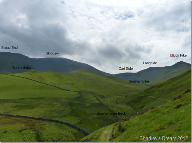 The ridge seen in the foreground forms Buzzard Knott & Randel Crag separated by the two valleys of Barkbethdale (foreground) & Southerndale just on the other side in-between the Ullock Pike ridge.