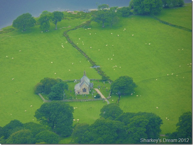 Zooming in on St Bega’s Church from Ullock Pike summit.