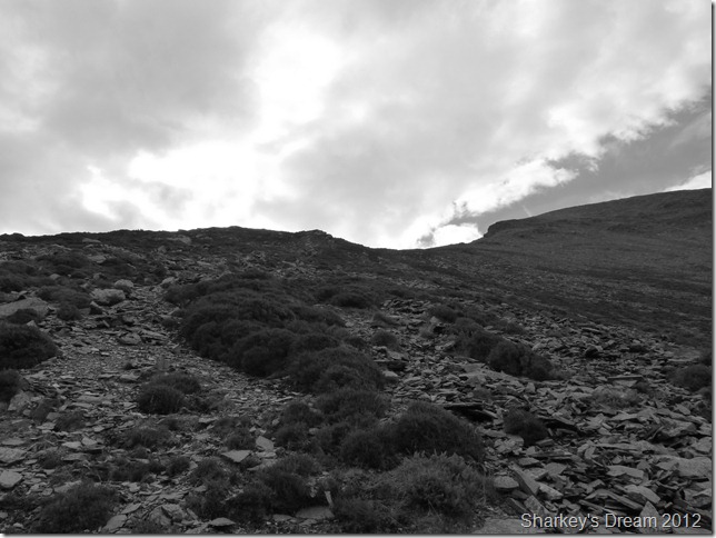 It’s time to leave the cove & ascend a little where upon I can gaze at the Arête & my ridge route. from here it looks a steep one… |