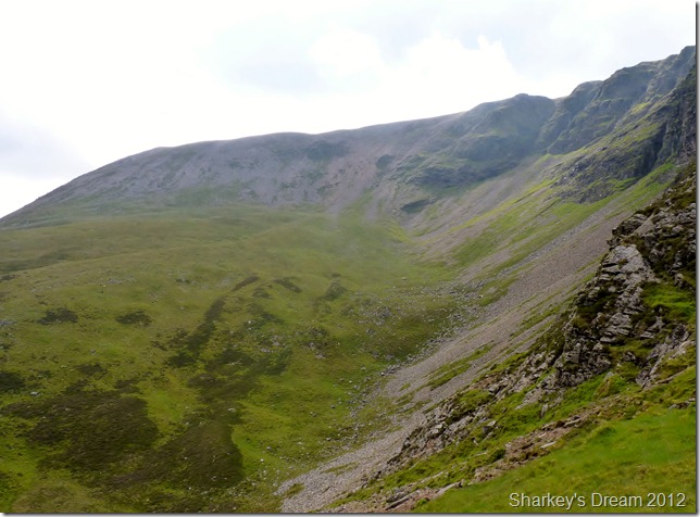 Looking across the scree towards Crag Hill (Eel Crag) (L) & Wandope (R) as I start my descent. |