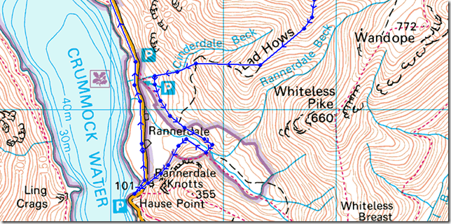 Passing through Dale How & the lower flanks of Rannerdale Knotts. |