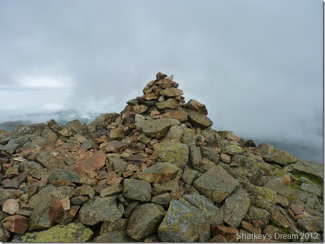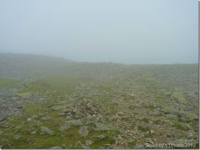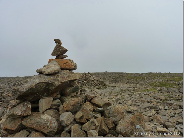 Sadly with not much to see I took this less inspiring shot of the cairn, but I guess all I have to do is wait a wee while for the views to open up. |