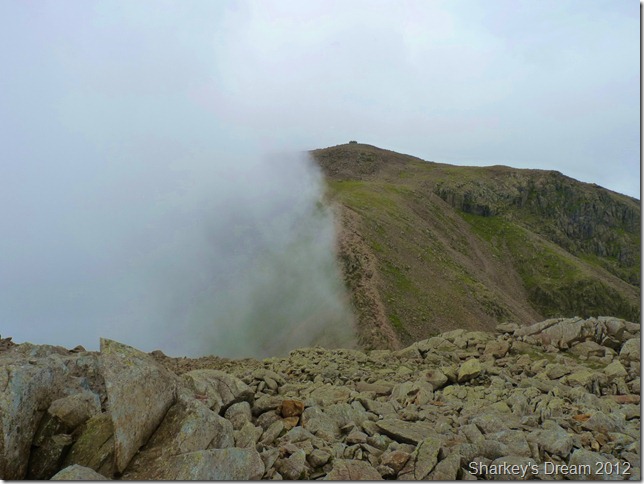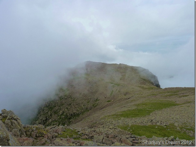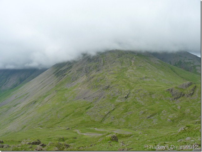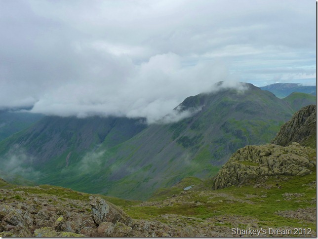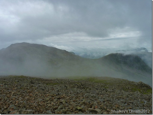 Great Gable summit can be briefly seen but is only momentarily. Kirk Fell behind however is not so lucky. |