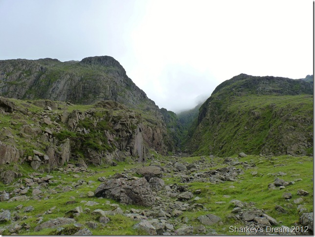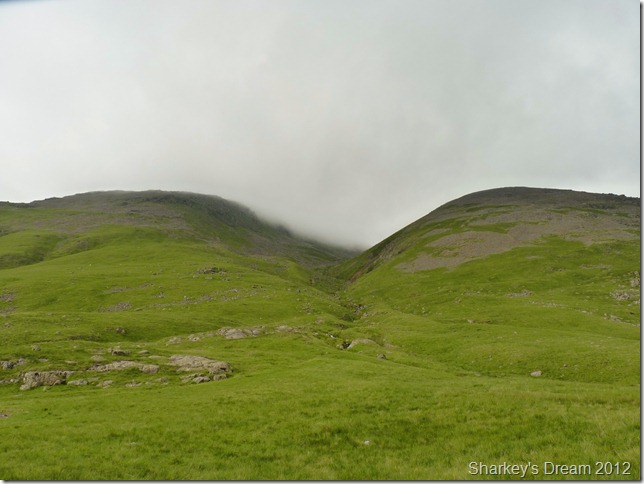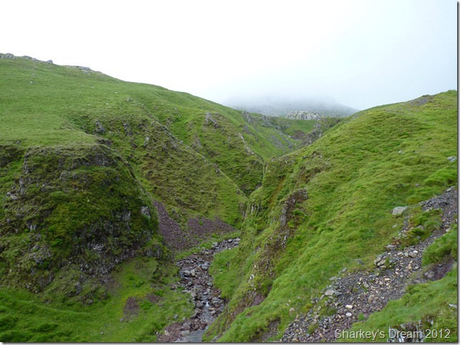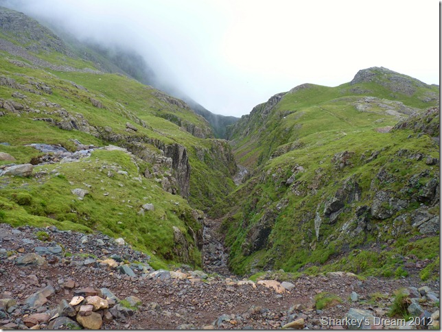 A while later & the cloud seems to back as it creeps up the Gill, within what seems like seconds Piers Gill is gone. I shoulder my pack & head of into the rain & cloud along the footpath you see in the right of the photo.