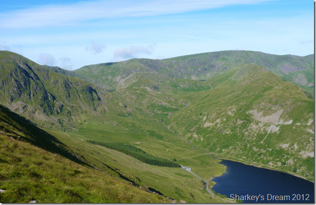 After passing the highest point along the route I start my descent into Mardale. My mornings ascent on the Branstree north ridge can be seen in the left of the picture. |