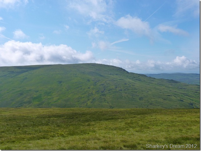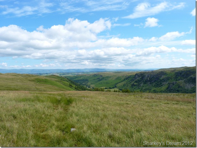 Looking south over Selside Bottom, Kentmere Pike & Shipman Knotts. The depression to the right of Kentmere Pike is where Wren Gill Quarry is situated. |