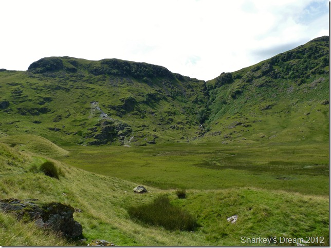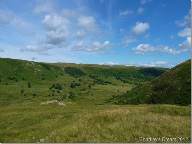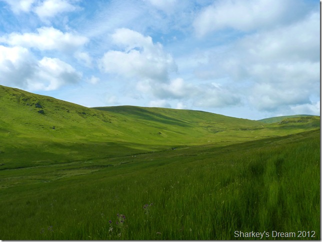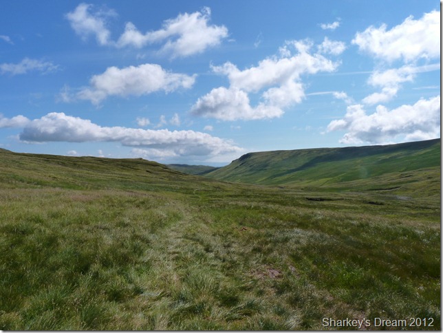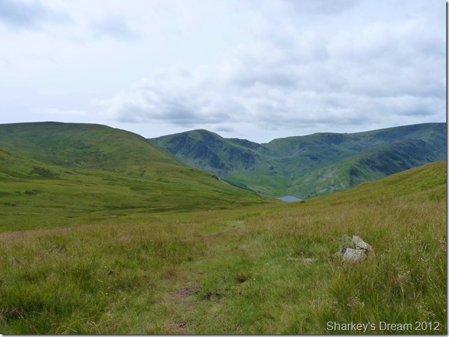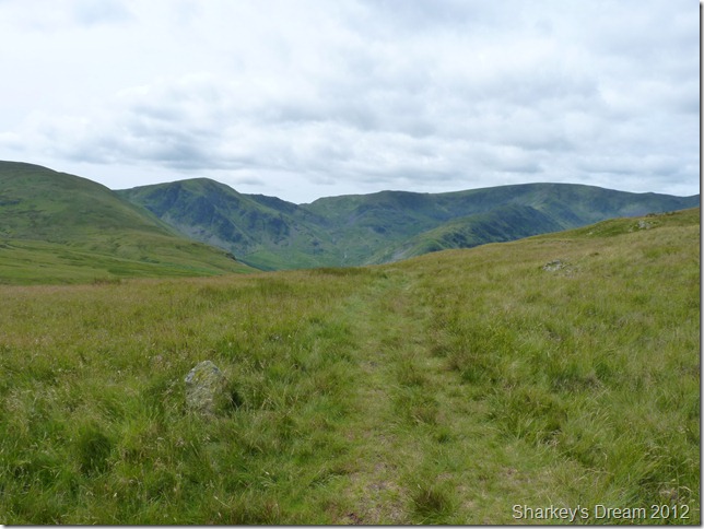 Looking back along the start of the Corpse Road into Swindale, over on the right we have Langhowe Pike & on the left the Harper Hills.