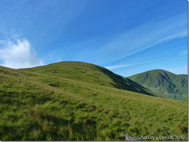 Finally the bracken gives way for a less obvious grassy track, it was nice to be out of the bracken as towards the end I was getting slightly dis-heartened with the stuff as it seemed I was gaining nowhere fast, adding to this frustration was my car every time I looked back along the Haweswater road didn’t seem to be getting any smaller. |